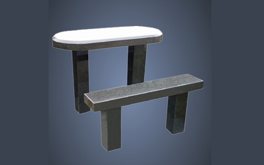 Столы и лавки, изготовленные из гранита и литьевого мрамора, по сравнению с деревянными столами и лавками более долговечны и на них не влияют такие погодные явления как дождь, снег, прямые солнечные лучи.
